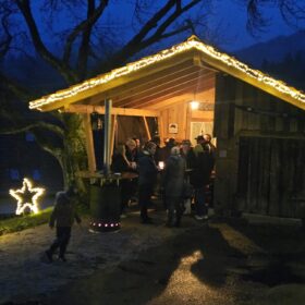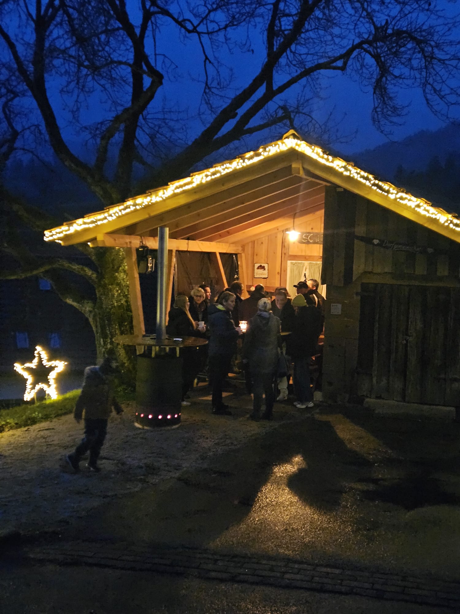 Zwar spielte das Wetter der Dorfgemeinschaft an diesem Nachmittag nicht in die Karten, doch mit viel Engagement wurde das alte Schulhaus samt Schulhof liebevoll dekoriert und stimmungsvoll beleuchtet. Draußen lud die gemütlich eingerichtete Schutzhütte zum Verweilen ein, während wärmende Holzöfen für angenehme Temperaturen sorgten.